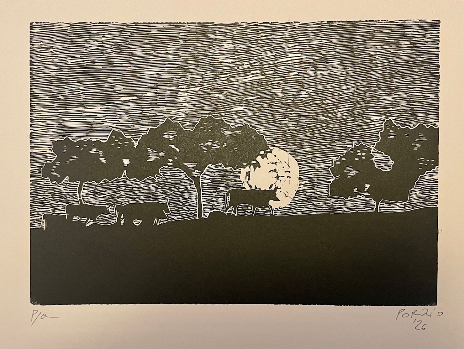 E’ una scena di tori selvaggi nelle campagne andaluse. Ho ritratto il momento in cui gli animali camminano nella luce lunare. È la Luna con la maiuscola di García Lorca? Certo è appena sorta, rischiara i campi e definisce i contorni degli animali. Mi interessava la potenza di questa immagine dal grande valore plastico e chiaroscurale.