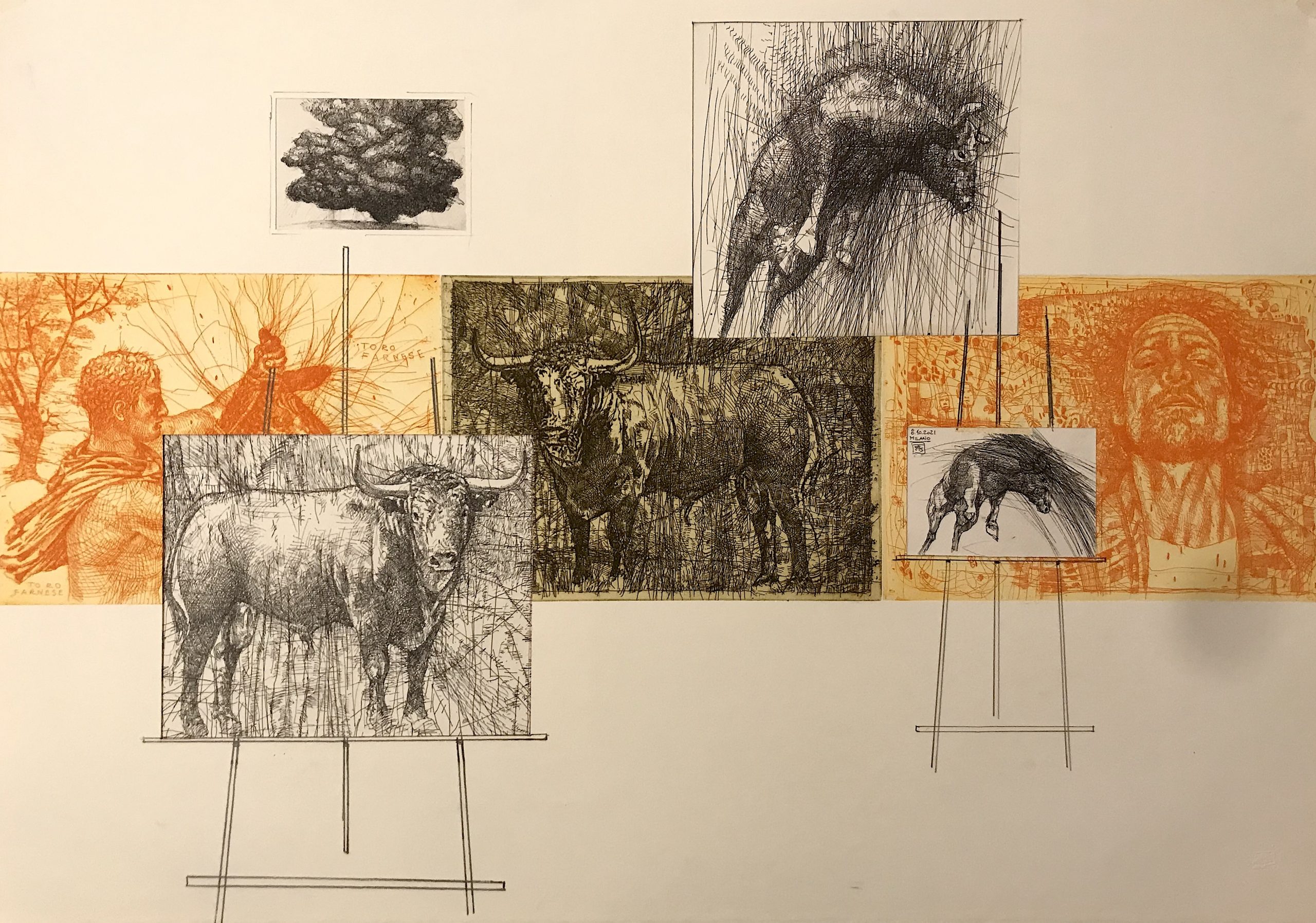 Quindi mi sono immerso nella ricerca sulla rappresentazione della lotta fra uomo e toro: dalla Tauromachia ai Tori di Bordeaux di Goya, fino ad altri lavori sul tema, compresi i disegni e le opere di Picasso. Da questo percorso è nata, quasi organicamente, l’idea di creare un libro di incisioni, affrontando un tema così antico e già profondamente radicato nella nostra cultura.